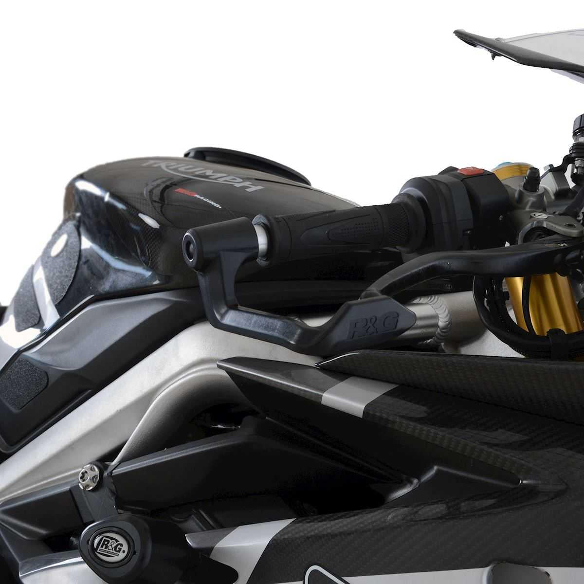 Vårt R&G bromshandtagsskydd kan monteras på bromssidan och har utformats specifikt för Triumph Daytona Moto2™ 765 20-modeller. Ursprungligen utformat i Moto2 men nu använt av nästan alla motorcykelföretag världen över (ACU, MSVR, MotoAmerica, FIM) och krävs för racing. Lever Guard utvecklades för att förhindra oavsiktlig inkoppling av frambromshandtaget under täta racinghjul (antingen från oavsiktlig kontakt med en annan motorcykel eller till och med en förare) men kan lika gärna användas för landsvägskörning, vilket skyddar ditt/dina handtag från kollisioner med backspeglarna samtidigt som det filtrerar tillbaka bromsen och potentiellt orsakar bromsinkoppling. R&G bromshandtagsskydd är FIM-godkända delar!