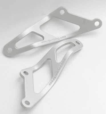 Denna avgasrörshållare passar Aprilia RSV 04 och framåt med dubbla avgasrör. Finns i svart eller silver.