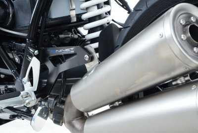 Denna snygga R&G avgashållare har specialdesignats för BMW R NINE T 14-modellen och minskar inte bara vikten, utan ger även motorcykeln ett sportigare och elegantare utseende. Med en elegant, svart, pulverlackerad finish och livfull R NINE T-grafik är den tillverkad av robust flygplansaluminium och kommer att behålla sitt snygga utseende i många år.