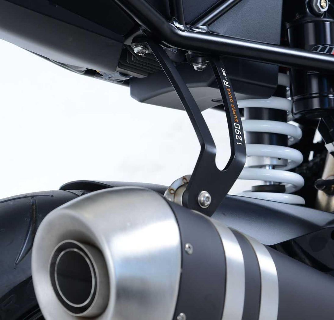 Denna snygga R&G avgashållare har specialdesignats för KTM 1290 Super Duke R 17-19-modellerna och minskar inte bara vikten, utan ger också motorcykeln ett sportigare och elegantare utseende. Med en elegant, svart, pulverlackerad finish och livfull 1290 Super Duke R-grafik är den tillverkad av robust flygplansaluminium och kommer att behålla sitt snygga utseende i många år.