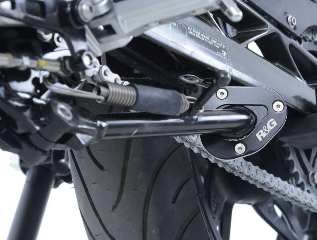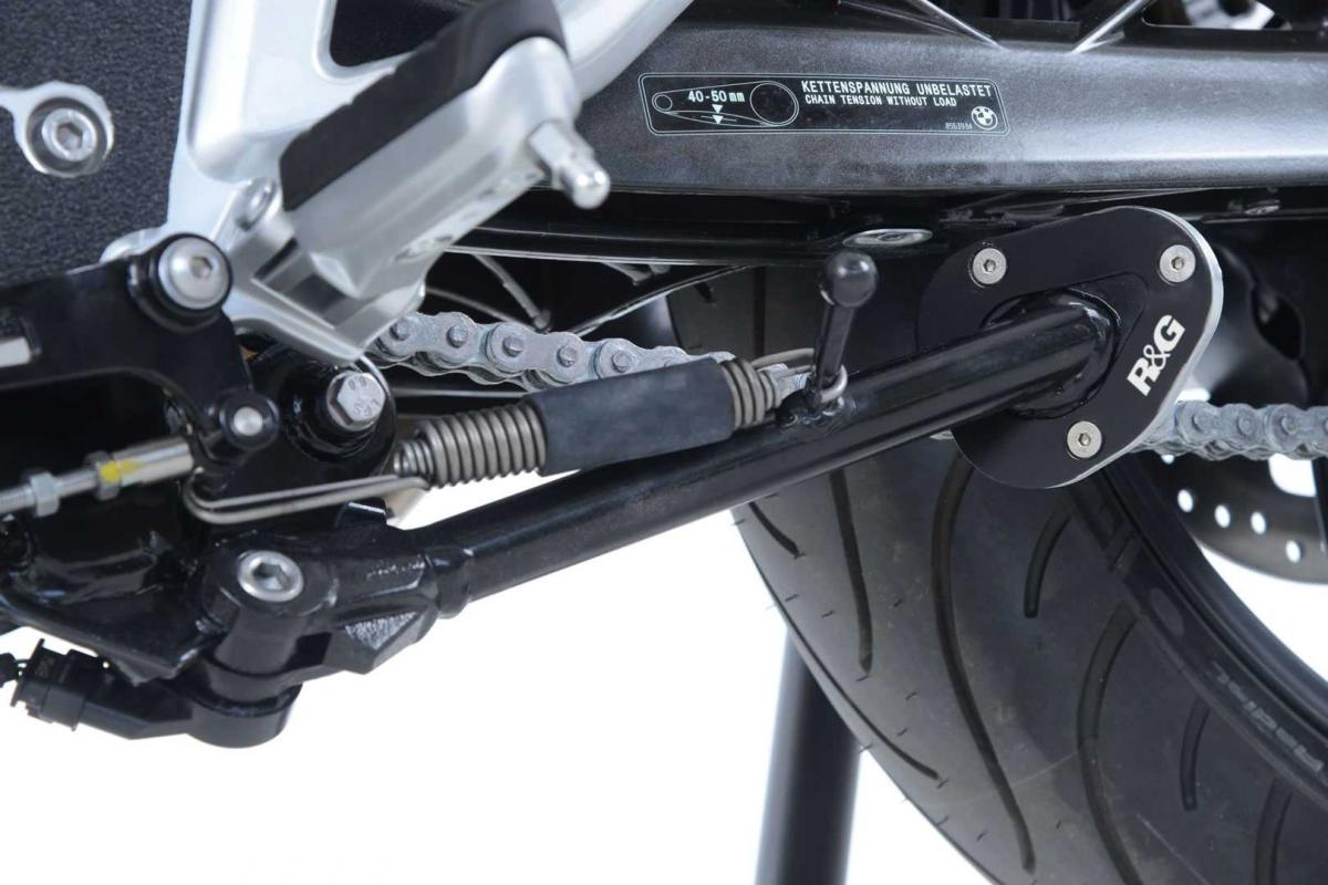 Glöm aldrig din sidostödspuck igen! Stödskorna bultas fast på undersidan av sidostödet för att förstora originalets yta med upp till 100 %, vilket avsevärt fördelar belastningen på dem och hjälper till att förhindra att stödet "tränger igenom" marken. Trots denna förstoring påverkar inte skon markfrigången eller stör kedjans gång under normal körning. Denna specifika modell passar BMW G310R 17-19-modellerna.