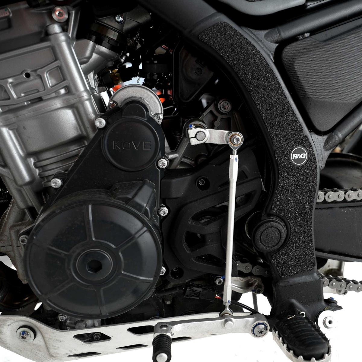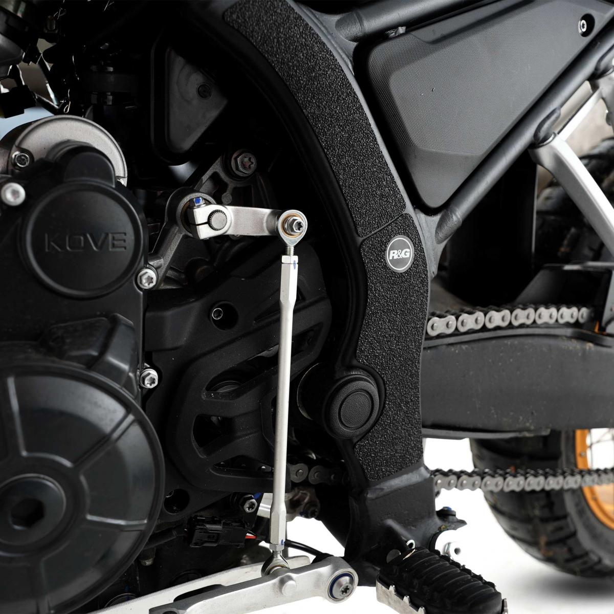 Detta 4-delade stövelskyddskit har specialdesignats för Kove 800X PRO. 24-R&G stövelskyddskit finns tillgängliga för en mängd olika motorcykelstilar och märken, med nya applikationer som regelbundet släpps. Den unika R&G-strukturen har specialdesignats för att vara hållbar och ger föraren en buffert mellan stöveln och de exponerade områdena på svingarmen, vilka (ibland) kan komma i kontakt med varandra under kurvtagning, vilket orsakar slitage och oönskade skador på svingarmen eller stövlarna (båda dyra att reparera!). Tillverkad i Storbritannien.