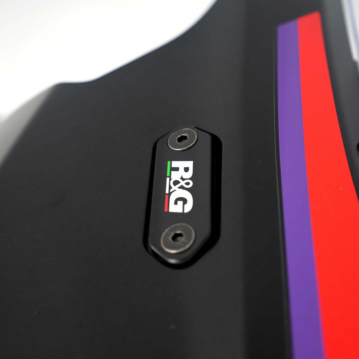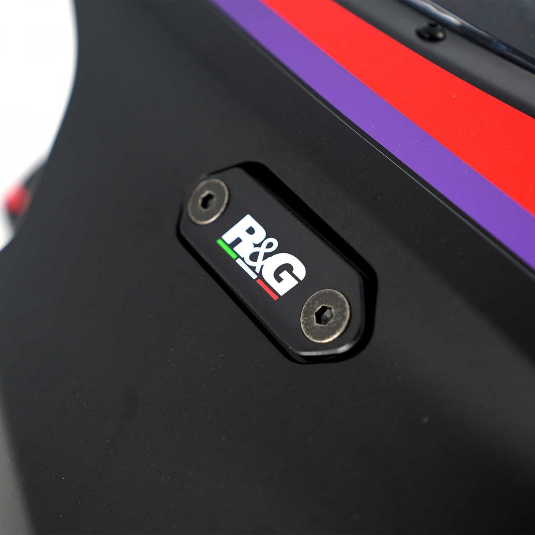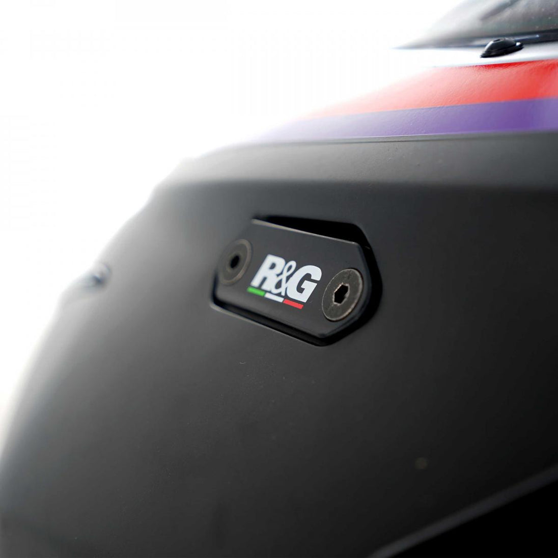 Ta bort dina backspeglar för den där rebelliska looken eller helt enkelt för att stoppa dina kåpor från att fladdra under banåkning eller tävling! Dessa snygga trefärgade R&G-spegelblankplattor förbättrar utseendet på din motorcykel genom att täcka de annars exponerade monteringspunkterna från speglarna. Denna produkt är lämplig för Aprilia RS457 24-modellerna.