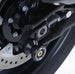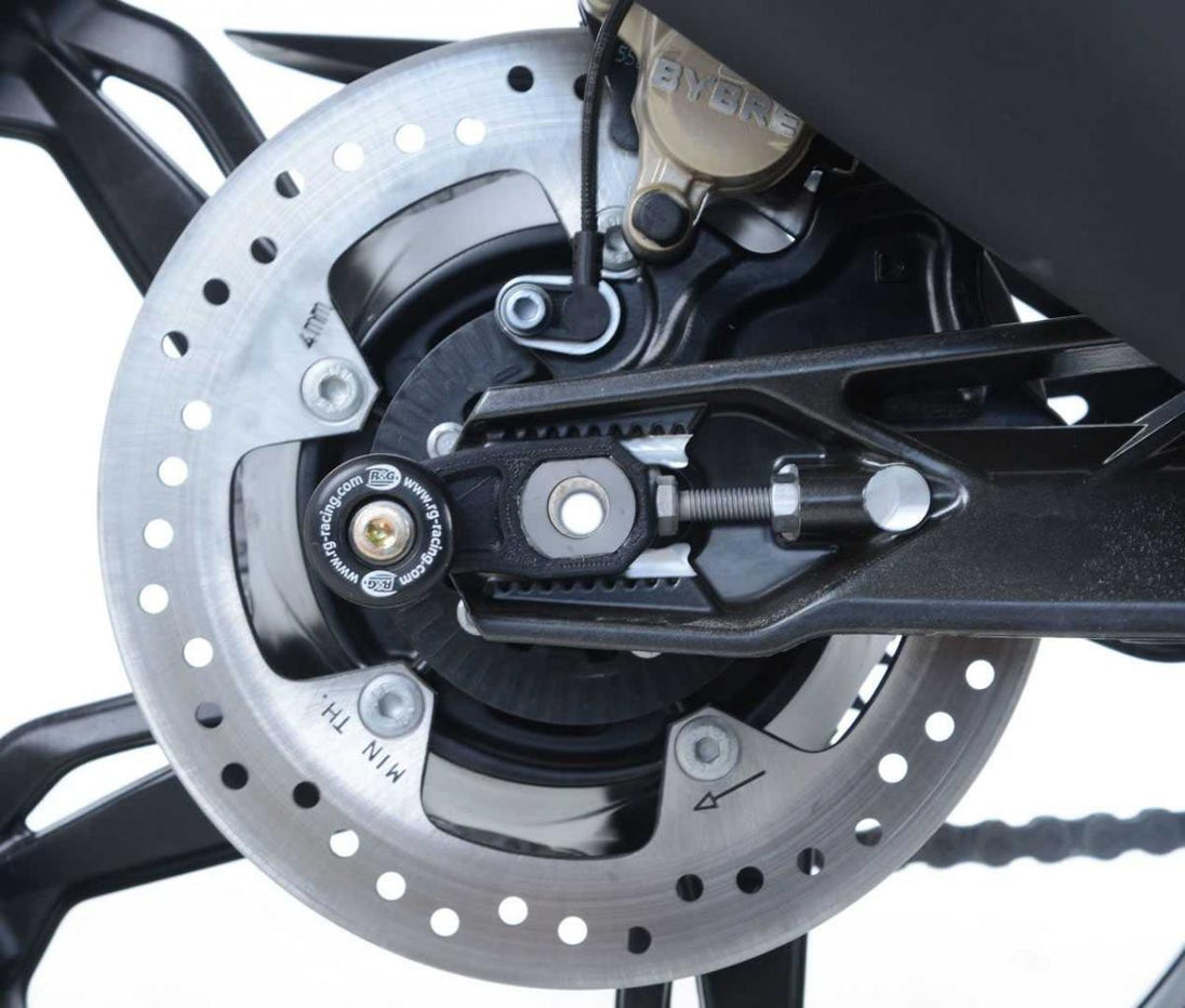 Är det bomullsrullar eller svingarmsskydd? Ja, det är de båda!! R&G Offset bomullsrullar skyddar svingarmen och svingarmens kärnkomponenter från skador vid en krock, glidning eller fall. De fungerar även som spolar för paddockställ och gör att motorcykelns bakhjul kan lyftas upp i luften med hjälp av ett paddockställ för att utföra kedjejusteringar, kedjesmörjning och rengöring! Detta specifika par med R&G Offset bomullsrullkit har specialdesignats för att flytta bomullsrullens paddockställsspolplats längre bakåt, eftersom konventionellt svingarmsmonterade bomullsrullar kan påverka det originala avgasröret under fjädringens rörelse, vilket orsakar skador och problem med fjädringens prestanda. Lämplig för BMW G310R GS 17-, G310RR 22- och TVS Apache RR 310 21- modellerna.