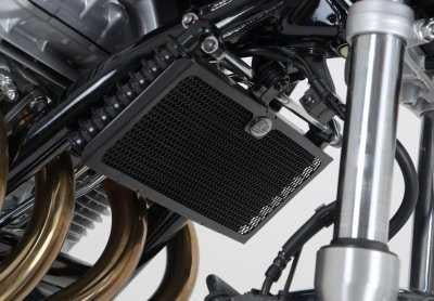 R&G oljekylarskydd finns i svart finish. De är tillverkade av pressad aluminium och har en snygg, sömlös ram. De förbättrar utseendet på din motorcykel och hjälper till att skydda din dyra och sårbara oljekylare från flygande skräp. Inga permanenta modifieringar behöver göras på motorcykeln. Detta oljekylarskydd är lämpligt för Honda CB1100 (13- och framåt).