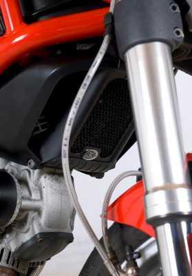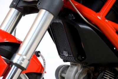 R&G oljekylarskydd finns i svart eller röd pulverlackering. De är tillverkade av pressad aluminium och har en snygg, sömlös ram. De förbättrar utseendet på din motorcykel och hjälper till att skydda din dyra och sårbara oljekylare från flygande skräp. Inga permanenta modifieringar behöver göras på motorcykeln. Detta oljekylarskydd passar Ducati Monster 1100 (2009 och framåt), Monster 1100S, Monster 1100 EVO och Monster 795796 (10-).