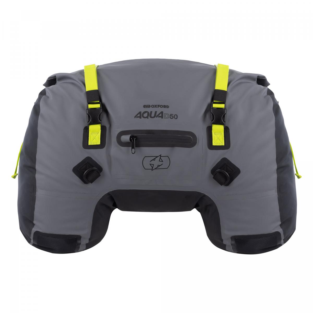Bär allt på vad som helst! Låt oss inse det, många moderna cyklar är helt enkelt bagagefientliga. De har små baksäten och/eller obefintliga bakre hjälpramar... inget att vila mot och ingenstans att fästa något! Försök att montera ett par cykelväskor på hälften av de nya cyklarna som säljs idag - det är en utmaning! Men om du behöver STOR BÄRKAPACITET kan Oxfords AQUA Duffle-väskor vara svaret. De är perfekta för: - Sportcyklar med små baksäten... - Streetfighters utan bakre hjälpram... - Scootrar utan öppen ram för att säkra bagage till... - Cruisers med lite utrymme under... - Samt alla vanliga äventyrscyklar. Om det inte räcker för dig, omsluter AQUA Duffle-väskor cykeln, maximerar de stabiliserande kontaktpunkterna med cykeln och, till skillnad från traditionella cykelväskor, kan de inte bukta i avsaknad av sidopaneler. Naturligtvis levereras de fortfarande med Oxfords unika universella monteringssystem, vilket gör att du kan bära upp till 50 liter bagage med fullständig sinnesro. Viktiga funktioner - Robust duffelväska i PVC-presenning - Avtorkningsbar, vattentät konstruktion med svetsade sömmar - Vattentät rullstängning - Justerbara kompressionsremmar för maximal stabilitet - Vattentät bakficka med dragkedja - Värmebeständiga paneler på pakethållaren - Unikt fästsystem för motorcyklar med säkerhetsrem under sätet - D-ringar gör att väskan kan fästas säkert på motorcykeln - Universell passform för nästan alla motorcyklar - Bredd: 60 cm, Höjd: 40 cm, Djup: 30 cm - Kapacitet: 50 liter - Väska med 70 liters kapacitet finns även tillgänglig - Finns i svart, svart/grå/fluo och khaki/svart
