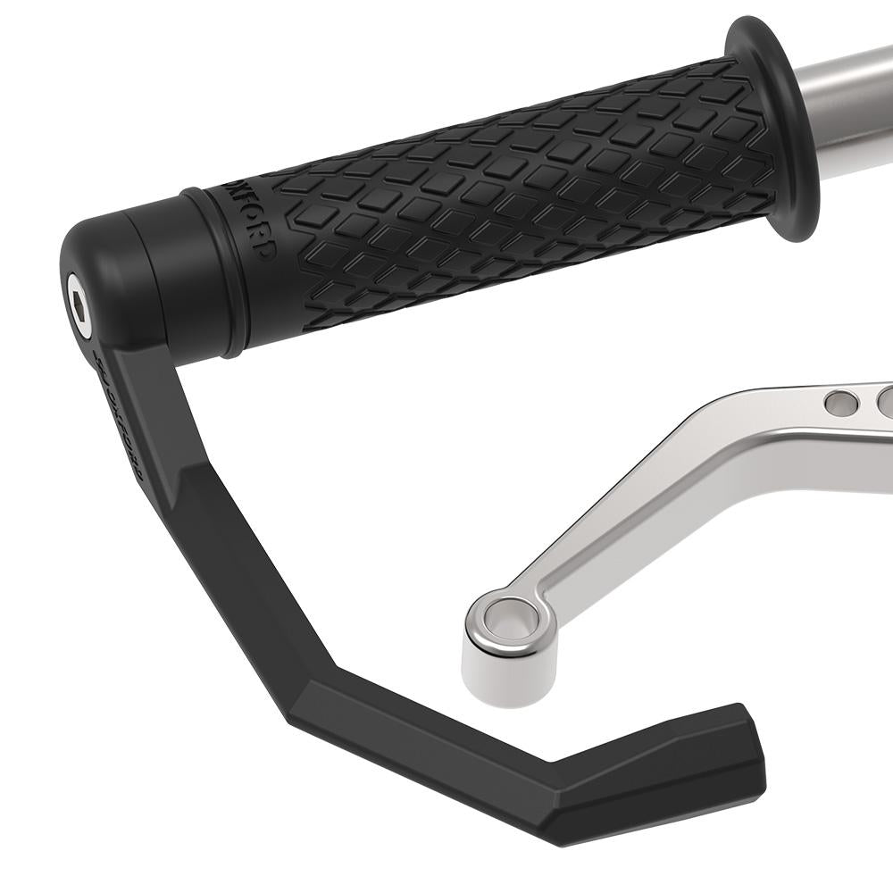 Hävstångsskydd utvecklades för att undvika oavsiktlig aktivering av frambromshandtaget under täta tävlingar. Detta koncept kan även tillämpas på landsvägskörning, då det skyddar ditt/dina reglage från stötar från backspeglarna samtidigt som filtret skyddar mot stötar. Viktiga funktioner - Lätt att installera - Minskar oavsiktlig aktivering av reglage - Lättviktskonstruktion i glasfiberfylld nylon - Unik Oxford-design - Skydd mot stötar från reglage - Perfekt för användning på bana - Universell design passar 22 mm styre - Inkluderar 12–18 mm styresinsatser för olika typer av styre Vänster (OX797) och höger (OX796) reglageskydd säljs separat. Du behöver inte spendera en förmögenhet på reglageskydd för att cykla på bana - Bennetts Läs hela recensionen