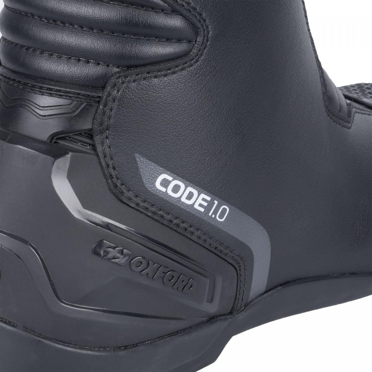 Code 1.0 är designad för sporttouringcyklister och erbjuder hög skyddsnivå och komfort med tryggheten från ett vattentätt Dry2Dry-membran, perfekt för långa dagar på vägen. Code 1.0 är CE-certifierad enligt nivå 2/2/2/2, den högsta möjliga kängklassificeringen. Stor vikt har lagts vid kängans skyddande egenskaper för att uppnå detta, inklusive PU-förstärkningar vid tån, hälkappan, fotbädden och fotleden. Mikrofiberovandeln har också imponerande motståndskraft mot nötning och skärskador. Code 1.0 använder Oxfords prestandasportsula och externa TPU-hälskyddssystem, vilket ger imponerande kontroll och sinnesro när du behöver det som mest. Komfortfunktioner som dragspelsstretch fram och bak förbättrar kängans flexibilitet och minskar trötthet utan att påverka skyddsprestanda. Ett 3D-nätfoder förbättrar andningsförmågan och arbetar hand i hand med det andningsbara Dry2Dry-membranet för att transportera bort svett för komfort hela dagen. Skydd - CE-certifierad nivå 2/2/2/2 (EN 13634) - Höjd: Nivå 2 (vadhöjd) - Slitstyrka: Nivå 2 - Stötsår: Nivå 2 - Tvärgående styvhet: Nivå 2 - Utvändigt TPU-skydd för fotled, häl och vad - Avtagbara tåskydd - PU-förstärkt tå och hälkappa - PU-fotbädd för åkkomfort och skydd - PU-fotledsskydd Klimatkontroll - Dry2Dry vattentätt och andningsbart fast membran - 3D-nätfoder för andningsförmåga Tyg och konstruktion - Ovandel i mikrofiber - Halkfri gummisula för motorcykel - Växelspaksdyna Justerbarhet och passform - Dragspelsstretchzoner fram och bak - YKK-dragkedja med kardborreband Försäkran om överensstämmelse Klicka här för att se överensstämmelsescertifieringar