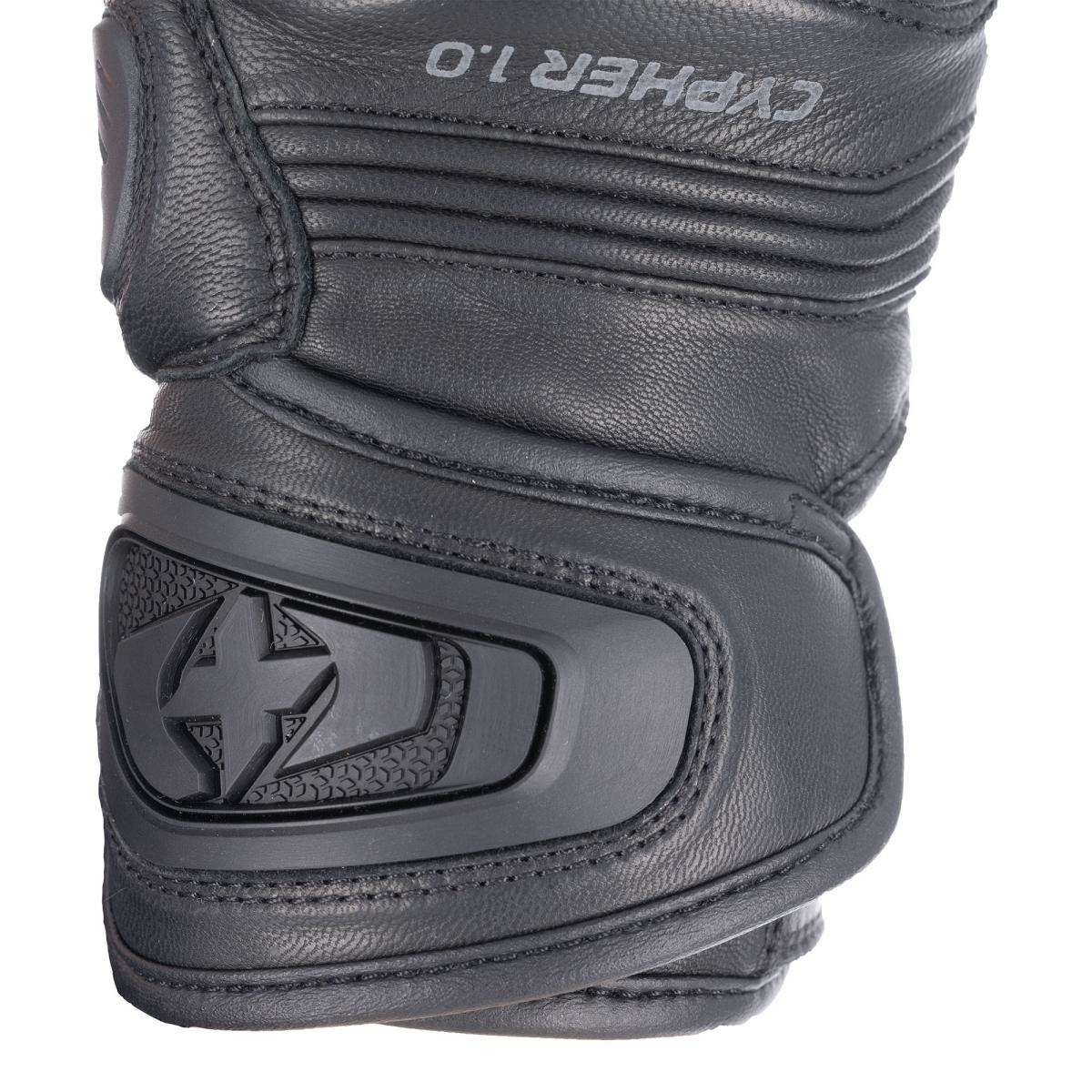 Cypher är en sporthandske i toppklass, designad för landsvägscyklister som vill ha högsta möjliga skyddsnivå. Helläderkonstruktion med aramidförstärkningar, TPU-knogar, extra omslutande finger- och handflateskydd, kortare 5 cm manschett med omslutande TPR-logotyp ger tillsammans CE-certifierat nivå 2 KP-certifierat (EN13594:2015) skydd. För maximal komfort och en skräddarsydd passform har Cypher-handskarna även dragspelspaneler på handryggen, tre fingrar och tummen, plus en flytande knoge. Skydd - Nivå 2 KP-certifierad (EN13594:2015) - Aramidförstärkt läder i handflatan för nötningsbeständighet - Oxford Sports TPU-skydd för knogar, fingrar och handflata ger stötskydd och extra nötningsbeständighet - Läderförstärkta överlägg för handflata, tumme och fingrar - PE-skumvadderade paneler vid manschett och tumme - TPR-manschettskydd Klimatkontroll - Perforerade fingertoppar för ventilation - Svettavvisande komfortfoder på handens baksida Tyg och konstruktion - 100 % premiumanilinläder - Pekfinger och tumme kompatibelt med pekskärm - Ergonomisk förböjd fingerkonstruktion minskar handtrötthet Justerbarhet och passform - Dubbla justeringsremmar för handled och manschett - Resår i handleden - Utvändiga fingersömmar för komfort - Dragspelsstretchpaneler på fingrarna och handens baksida Läs mer om våra cykelkläder genom att utforska vår webbplats: Försäkran om överensstämmelse Klicka här för att se överensstämmelsescertifieringar