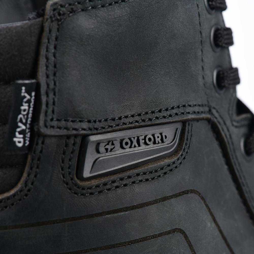 Avslappnade, hi-top-inspirerade ridstövlar med vattentätt, andningsbart Dry2Dry-membran för ridning i alla väder. Kontrollera vätan - Vattentätt, andningsbart Dry2Dry-membran. Lita på skyddet - CE-godkänd enligt EN 13634:2017 Höjd: Nivå 1, Slitstyrka: Nivå 1, Stötdämpning: Nivå 2, Tvärgående styvhet: Nivå 1) - Vadderad plös - Vadderad mocka-fotledssula - Förstärkt häl - Gelförstärkt sula. Tillverkad i läder. Ovandel i läder. Slitstarka nylonsnören - Vridskyddande mellansula - Halkfri stövelsula med flera densiteter - Dragögla - TPR-märkning vid fotleden - Finns i två färgställningar. Svart och brun. Försäkran om överensstämmelse. Klicka här för att se överensstämmelsescertifieringar.