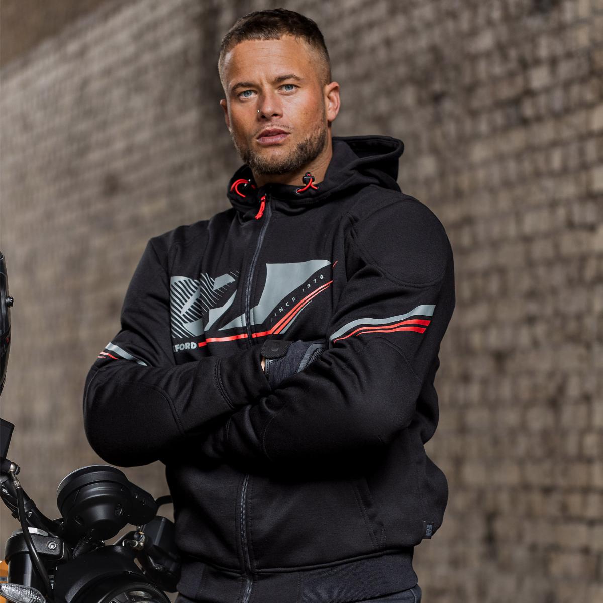 Oxfords Super Hoodie är en mjuk polyester-bomullsjacka på utsidan, men ett tekniskt ridplagg på insidan, godkänd enligt den nya CE A-standarden. Viktiga funktioner - CE A-certifierad (EN 17092-4:2020) - Nivå 2 CE axel- och armbågsskydd (EN 1621-1:2012) - Ficka för ryggskydd - Aramidförstärkningar ger extra slitstyrka i viktiga områden - Bältesöglor för säker och skyddande fästning med jeans - Nätfodrad för komfort - Ribbade muddar och fåll - YKK-dragkedja är fastsydd på både ytter- och innerfodret för maximal styrka - Kängurufickor - Dold dragkedja bakom de två framfickorna - Tumöglor för att säkra hoodien under ridning och förhindra vindkyla på armen - Huvan justeras med elastiskt snöre och TPU-justerare med kontrasterande snöre - Finns i tre färgställningar Försäkran om överensstämmelse Klicka här för att se överensstämmelsescertifieringar