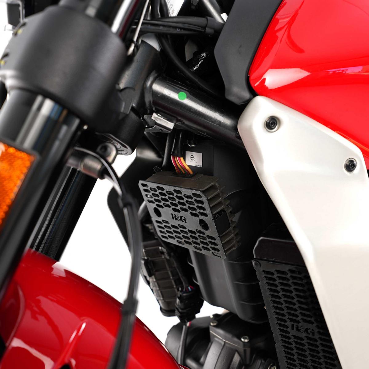 Denna monteringskonsol snyggar upp motorcykelns utseende genom att flytta likriktarregulatorn och öka gaffelutrymmet för gaffelrörelsen (eftersom likriktaren ursprungligen var monterad på det nedre gaffelgaffelgaffeln), särskilt när framänden är sänkt. Lämplig för Ducati Scrambler Icon, Nightshift och Full Throttle 23-.