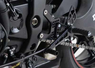 Maximera din potential och finjustera din maskin efter dina exakta behov. Lämplig för Kawasaki ZX-6R (modell utan ABS) 07- modeller - ENDAST tävlingsväxlingsmönster. Vad är Race Shift - Race Shift ändrar växlingsmönstret från ett vägväxlingsmönster (1 ner - 5 upp) till ett tävlingsväxlingsmönster (1 upp - 5 ner) vilket förbättrar din accelerationstid tack vare den minskade rörelsen. Tillverkade av lätt aluminium för hög hållfasthet och hållbarhet. R&G-bakfästen ger ett brett justeringsområde för exakt position och skräddarsydd för att passa varje förare (11 positioner). Utformade för att vara enkla att installera. Pulverlackerade i svart med skarp vit R&G-grafik på bromsstödet och reglagen, vilket ger dessa bakfästen ett mycket snyggt utseende. Fotstöden är speciellt texturerade för att säkerställa maximalt grepp även i de svåraste situationerna. Satsen innehåller ett komplett monteringskit, inklusive instruktioner för problemfri installation. Denna sats levereras med två monteringsfästen för bakbromscylindern och två bromsreglage, ett för 05-08-modellen och ett för 09-.