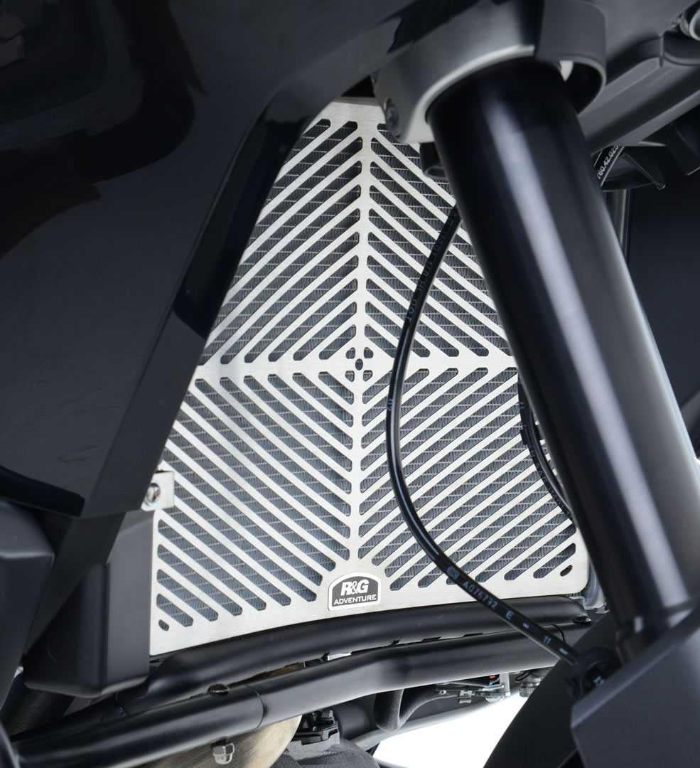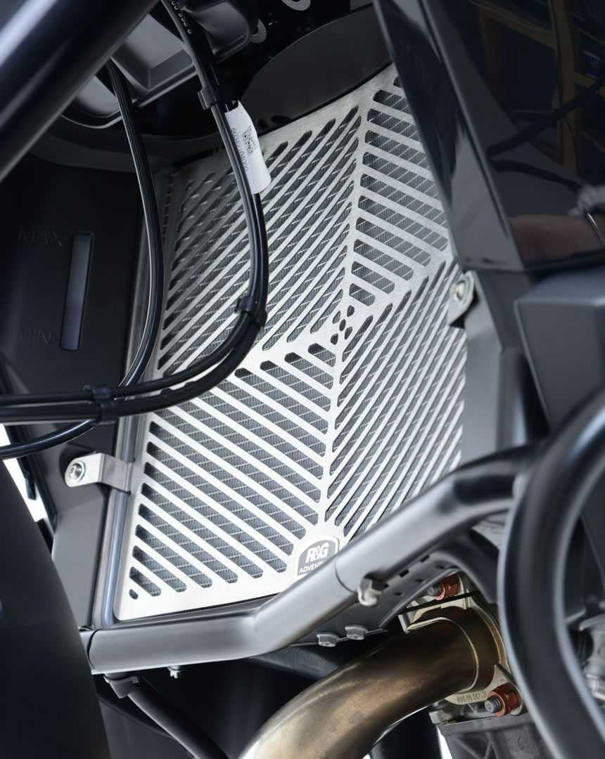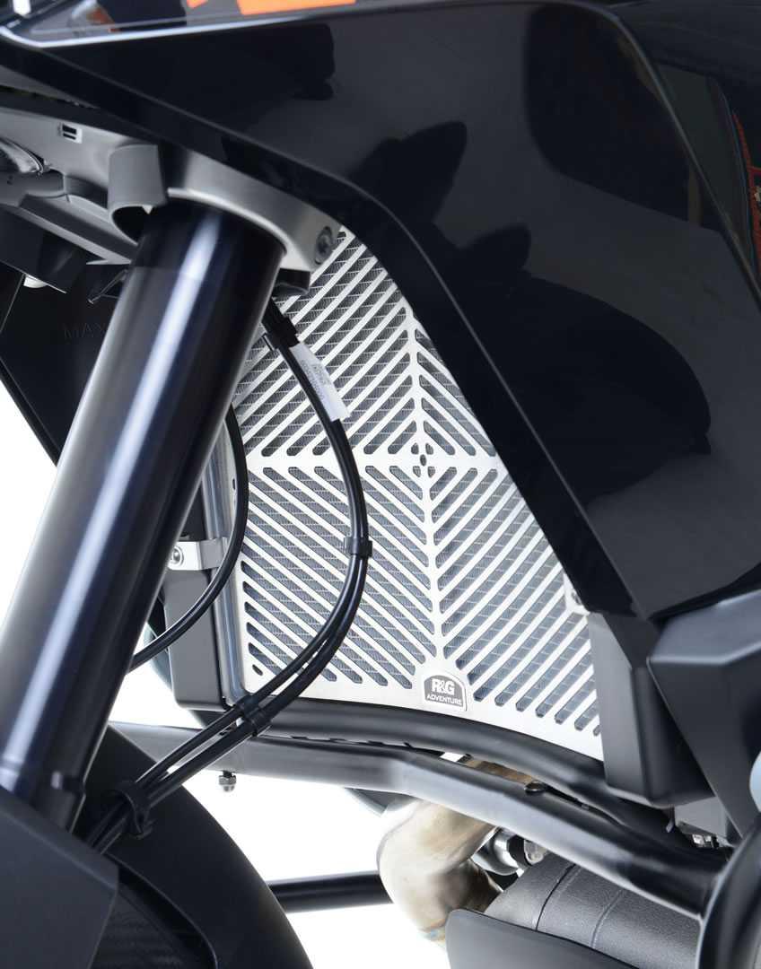 Denna modell passar KTM 1050 Adventure 15-, KTM 1090 Adventure 17-, KTM 1190 Adventure 13- och 1290 Super Adventure 15-20. Nytt för 2013. R&G-serien med rostfritt stålkylarskydd är en mer robust version av vårt befintliga aluminiumerbjudande och är särskilt avsedd för Adventure-motorcyklar. Skyddet är tillverkat av rostfritt stål vilket gör det otroligt starkt och rostfritt – perfekt för motorcyklar och förare som kan ta sig an krävande terräng och förhållanden. De laserskurna gallren är utformade för maximalt luftflöde till kylaren så att kylningen inte äventyras. Kylarskyddet är lika snyggt som det är ändamålsenligt. Det CNC-bearbetade skyddet fästs enkelt och snabbt på kylarens framsida, antingen genom att använda de befintliga monteringsbultarna eller genom att fästa en vajer.