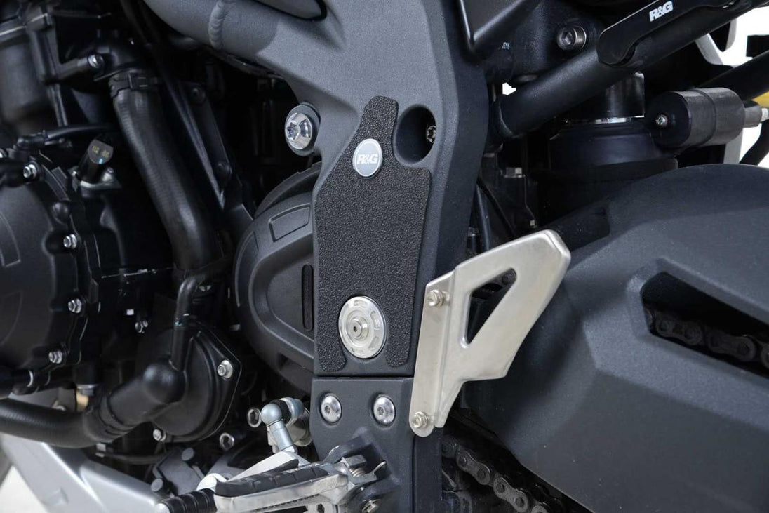Detta R&G-stövelskyddskit har specialdesignats för Triumph Tiger 1050 Sport 16-. R&G-stövelskyddskit finns tillgängliga för en mängd olika motorcykelstilar och märken, med nya applikationer som regelbundet släpps. Den unika R&G™-strukturen har specialdesignats för att vara hållbar och ger föraren en buffert mellan stöveln och de exponerade områdena på svingarmen, vilka (ibland) kan komma i kontakt med varandra under kurvtagning, vilket orsakar slitage och oönskade skador på svingarmen eller stövlarna (båda dyra att reparera!). Observera: R&G-stövelskydd levereras nu med ett självhäftande emblem med 25 mm diameter. Tillverkat i Storbritannien.