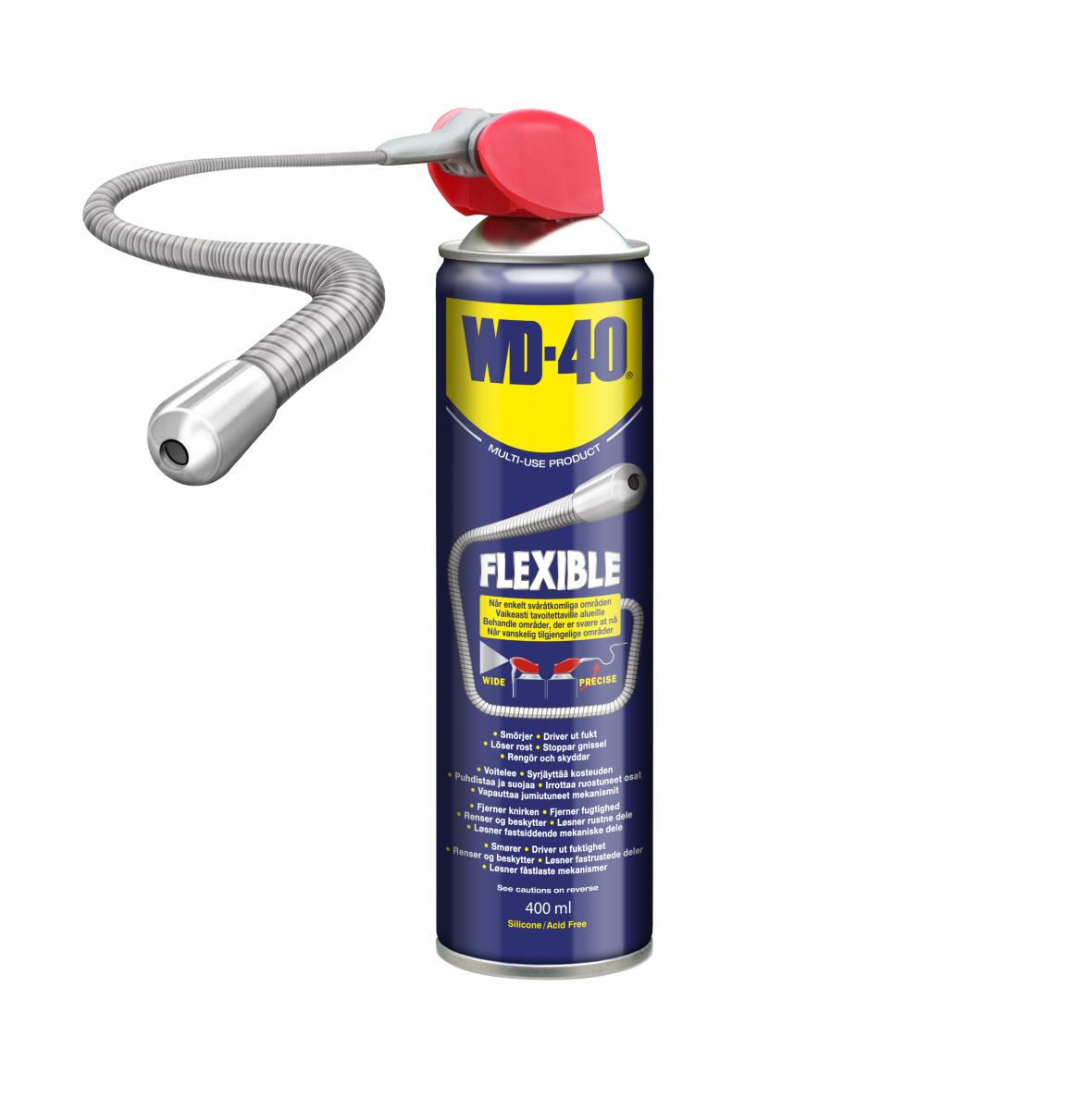 WD-40 Flexibel Multispray - med flexibel appliceringsrör! När enkelt svåråtkomliga områden och ställen. WD-40 Multispray skyddar metall från korrosion, tränger snabbt in och lossar fastrostade delar, driver ut fukt och smörjer nästan allt. Den rengör även ytor från olja, fett, och smuts. WD-40 Flexible är en uppgraderad version av populära WD-40 SmartStraw. Med appliceringsröret uppfällt sprayas produkten med precision och kan med hjälp av det flexibla appliceringsröret enklare nås svåråtkomliga ställen. Med appliceringsröret är nedfällt sprayas produkten brett och rikligt. 360°-ventilen gör att burken kan användas i alla möjliga vinklar och riktningar - även upp och ner WD-40 Multispray rekommenderar för trädgårdsverktyg och utrustning, tändstift, cyklar, dörrlås och gångjärn, elverktyg, motorer, borttagning av klistermärken mm