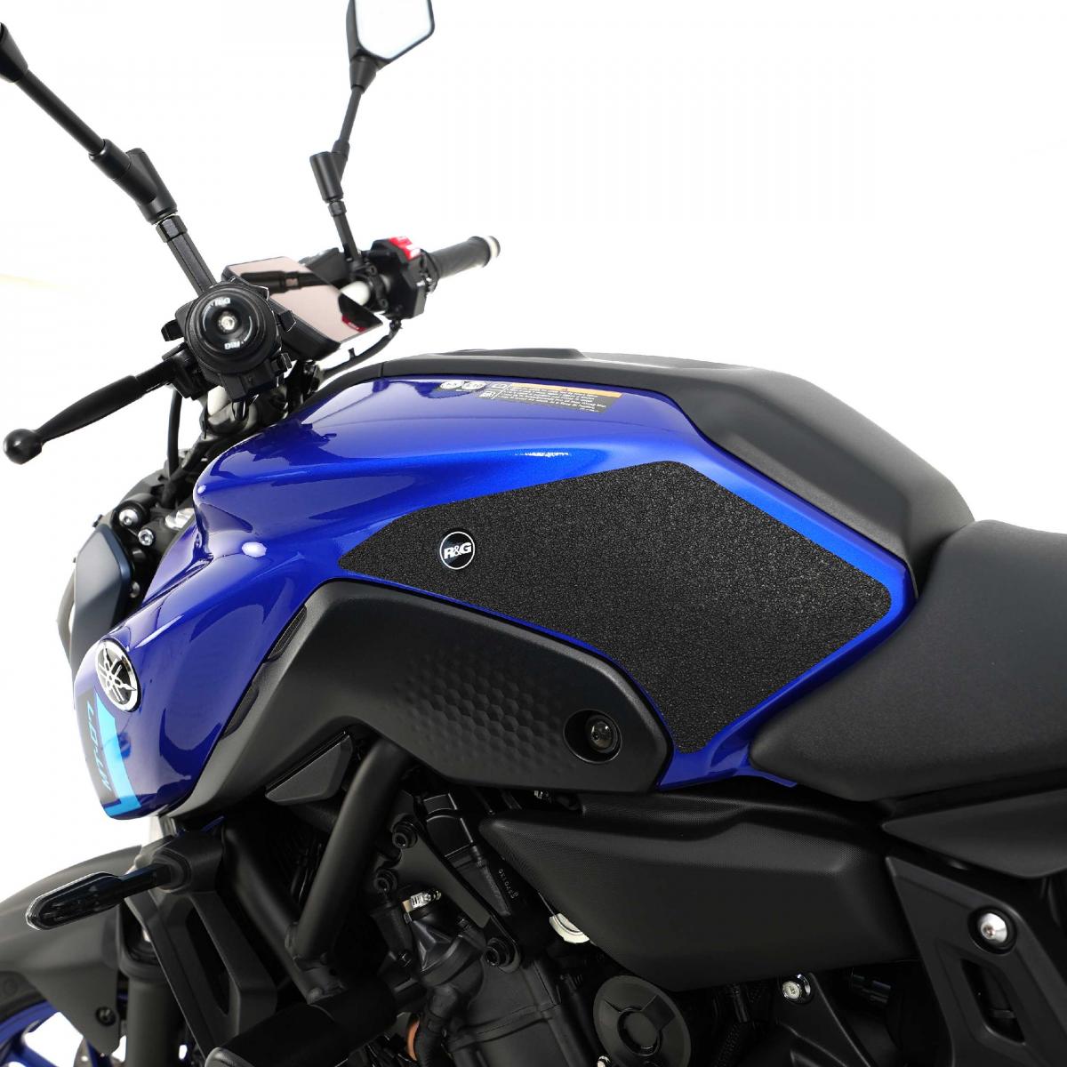 Dessa tvådelade R&G Tank Traction Grips har specialdesignats för Yamaha MT-07 21-modellen. R&G Tank Traction Grips-kit finns tillgängliga för många olika motorcykelstilar och märken, och nya applikationer släpps regelbundet. Den unika R&G-strukturen har specialdesignats för att vara både mjuk och hållbar, vilket ger föraren det grepp och den känsla hen behöver för bättre kontroll över motorcykeln, vilket gör att föraren kan bibehålla en stabil kroppsposition vid kurvtagning och inbromsning.
